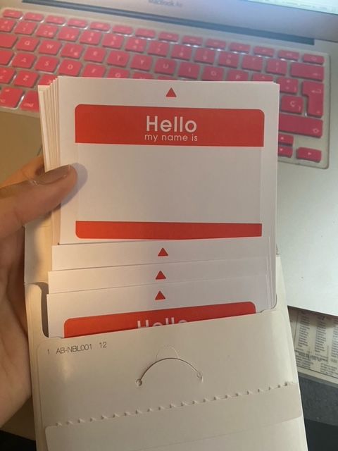 Por otro lado, Alejandra me mandó una foto de los stickers de Hello My Name Is y me compartió esta historia: