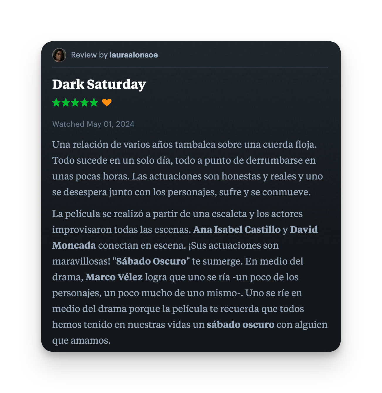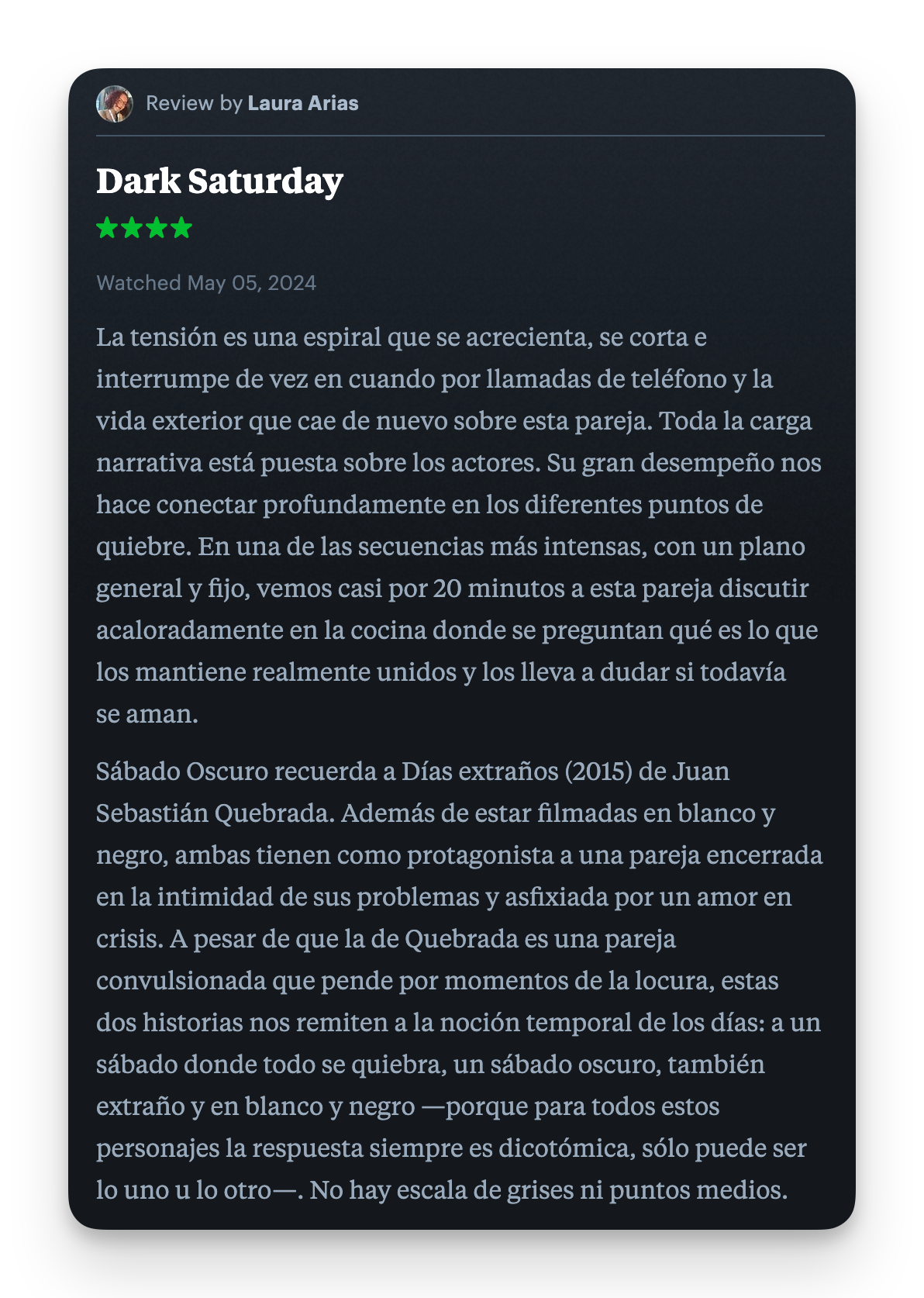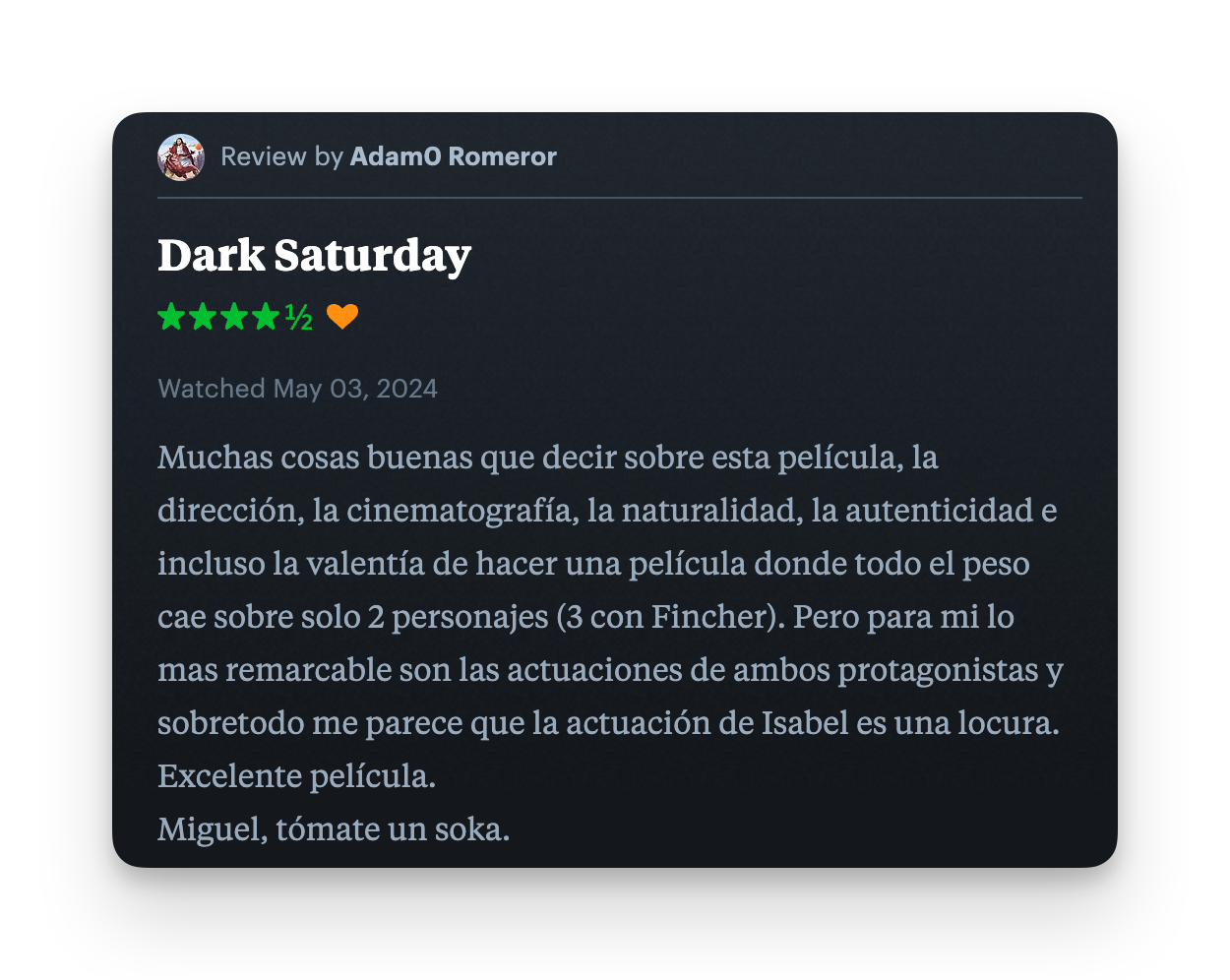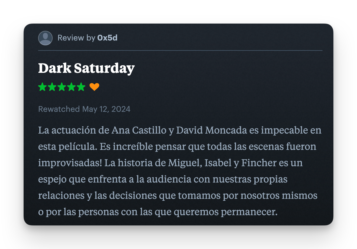 Lo que dicen de la película en Letterboxd